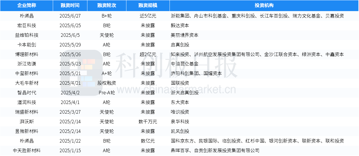 创投通数据显示,近一年来,国内高分子材料领域部分获投案例如下。