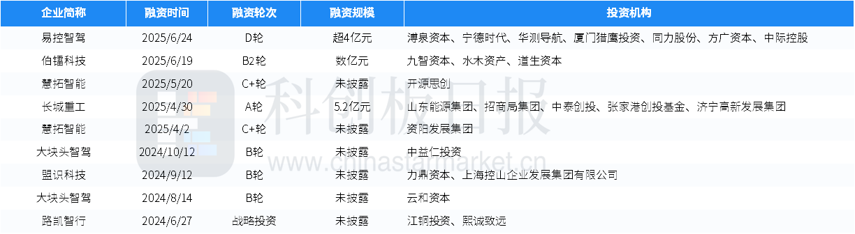 易控智驾成立于2018年,以无人驾驶技术为核心,构建起覆盖矿山运输全场景的智能化解决方案。近日,公司宣布完成超4亿元D轮融资。本轮融资由宁德时代通过旗下产业投资平台溥泉资本和自有资金领投,所融资金将重点用于无人驾驶产品的研发和市场开拓等。