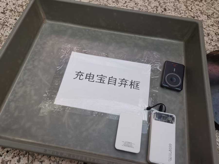 被旅客放弃、放在筐里的不合格充电宝