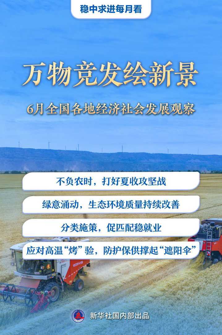 6月仲夏,万物丰茂,各地各部门统筹推进稳增长、促改革、惠民生举措。夏粮丰收,农业“黑科技”助力;生态环境质量持续改善,绿色转型成新引擎;分类施策促就业,稳住民生“基本盘”;应对高温“烤”验,保障力量快速响应。