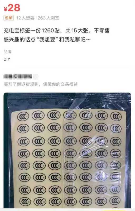 记者注意到,网购平台上部分充电宝容量标贴销售链接已下架,但个别商家仍通过“引导拍其他链接+备注”方式延续交易。灰色产业链曝光,百万枚标贴价格不足千元,印刷厂“来图即印”。