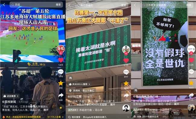 6月10日至9月27日,抖音生活服务结合赛事发起“跟着苏超逛吃江苏”活动,联合众多江苏商家打造多城看球打卡吃喝玩乐新体验。每逢赛事周末,比赛城市都会迎来一场消费爆发,抖音生活服务相关负责人称,本周末比赛城市较多,赛事关注点也从场内扩散到更具地方特色的美食、城市代表性景区,平台将结合不同城市特色,全方位助力文体旅融合,激发更大的“苏超”经济。