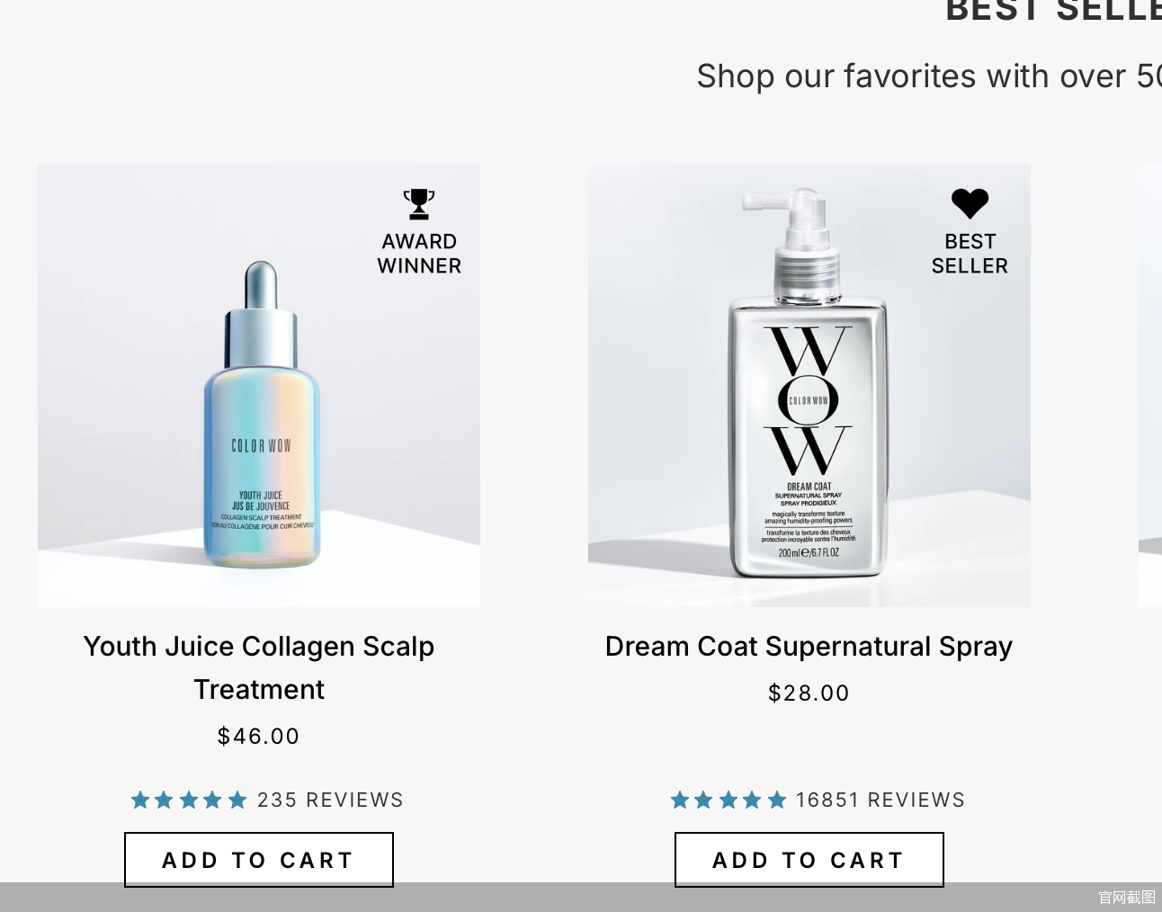 Color Wow来自美国,专注解决染发护理等“顽固发质问题”,凭借高功效、高性价比的定位和创新技术,在护发领域迅速崛起。目前Color Wow尚未正式进入中国市场,从官网信息来看,Color Wow产品单价超200元,定位高端专业护发品牌。