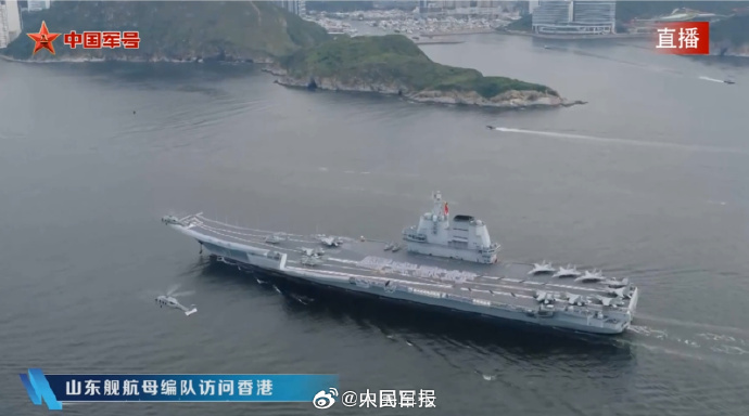 中国海军山东舰航母编队抵达香港 彰显国家实力