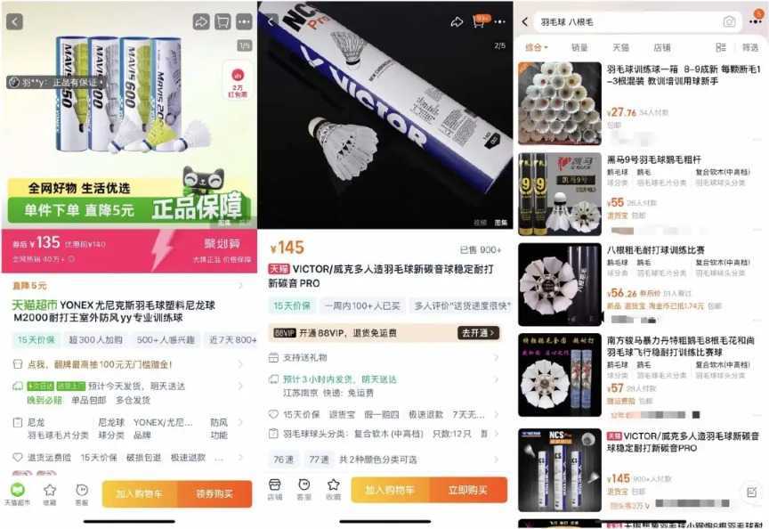 除此之外,无标球作为口粮球和训练球也颇受羽球爱好者欢迎。这类球一般会注明对标哪款知名品牌,比如亚狮龙、尤尼克斯、红超等,价格却不到后者的1/2。评论区不乏消费者肯定平替产品的手感、性价比等。