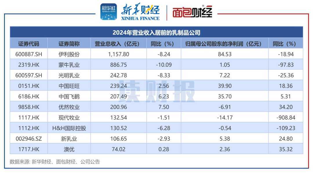 统计显示,2024年营收超百亿元的乳制品企业有9家,营收占比达整体的八成以上。