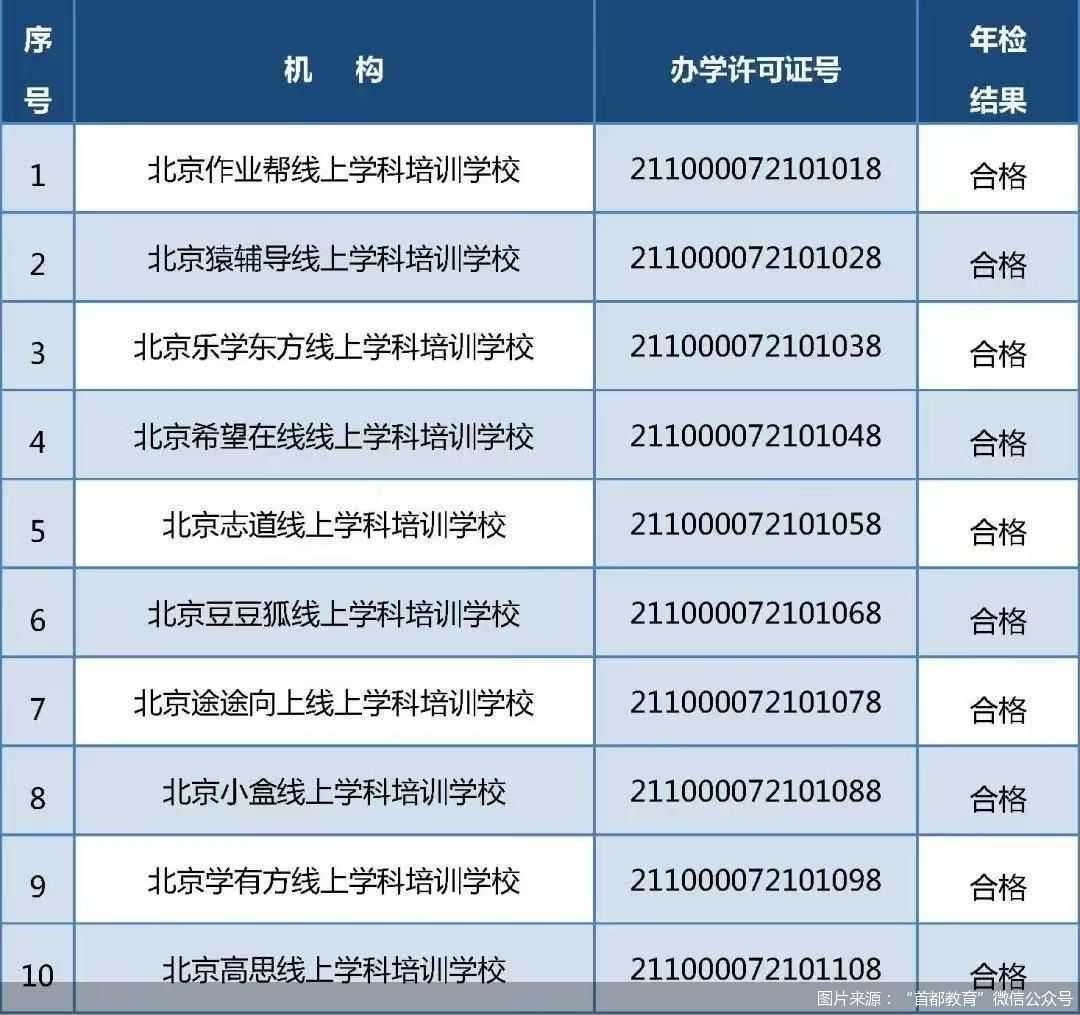 2024北京线上学科类校外培训机构年检结果出炉