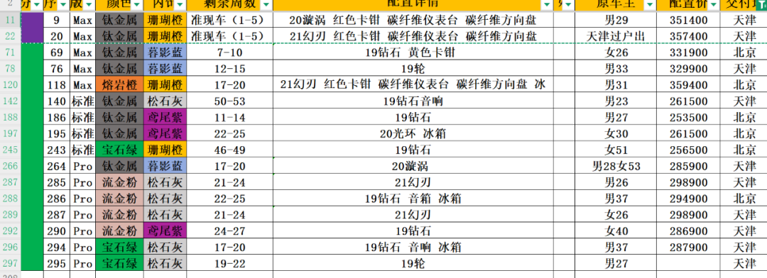 该卖家在其微信上展示了近300单小米YU7 Max订单,多为准现车,交付地包括太原、嘉兴、扬州、宁波等。没过多久,该卖家称辽宁现车已出售,天津和北京也有,但需等几天交付。