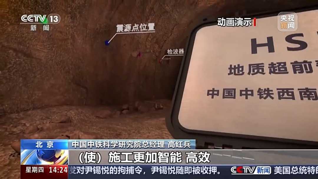 中国中铁科学研究院总经理高红兵:它利用刀盘与岩石的摩擦,产生震动信号,实时采集隧道前方100米不良地质信息,包括断层、涌水,及时纠正各项参数,使施工更加智能高效。
