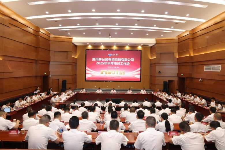 7月9日,贵州茅台酱香酒营销有限公司2025年半年市场工作会在茅台会议中心召开,对酱香系列酒上半年市场营销工作进行复盘总结,统筹部署下半年市场工作,为完成年度目标统一思想、凝聚共识。