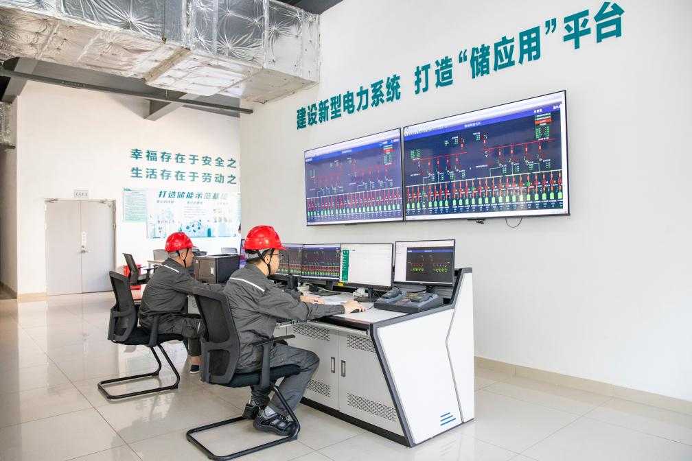 6月16日,国网湖州供电公司工作人员在长州储能电站控制中心查看运行情况。新华社记者徐昱摄
