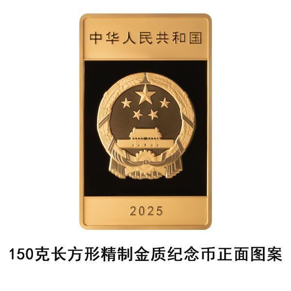 150克长方形金质纪念币为精制币,含纯金150克,面额2000元,最大发行量300枚。