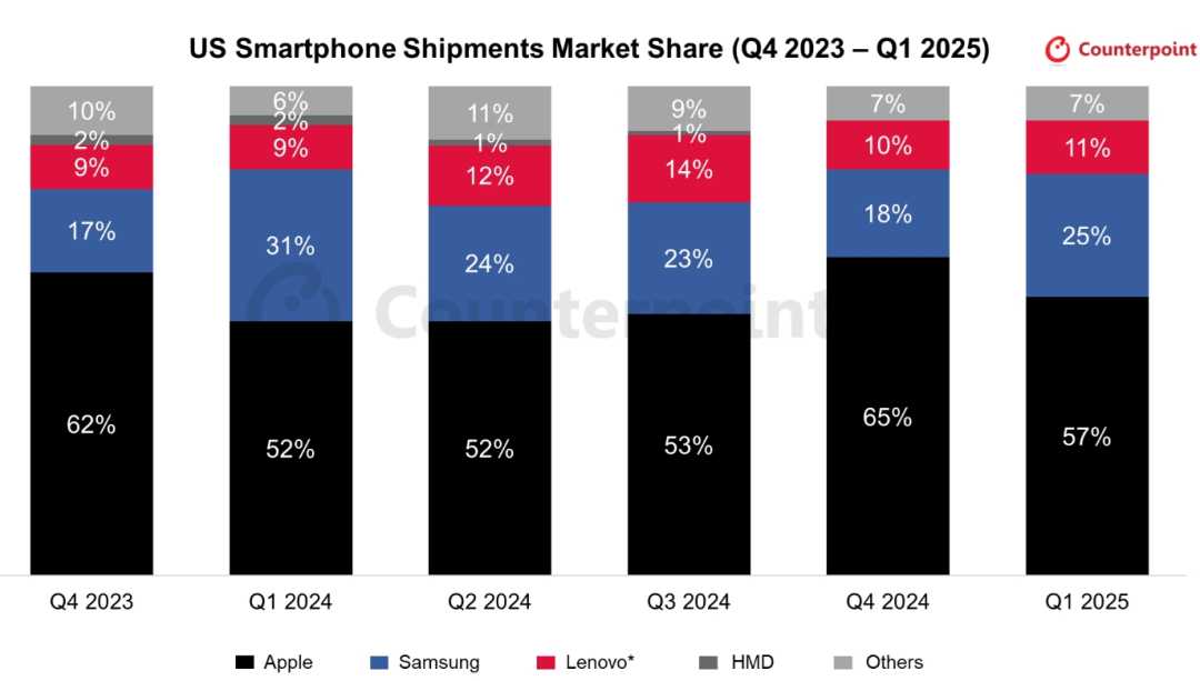 从去年开始,谷歌将秋季新品发布会从10月挪到8月中旬进行,这也被视为向主流厂商发起挑战的信号。虽然谷歌拥有全球最大搜索引擎,也是安卓系统的开发商,但公司在硬件设备领域的存在感并不强。研究机构Counterpoint的数据显示,即便在美国智能手机市场,谷歌的市占率只能放在“其他”一项中计算,距离苹果、三星和联想(摩托罗拉)仍有显著差距。