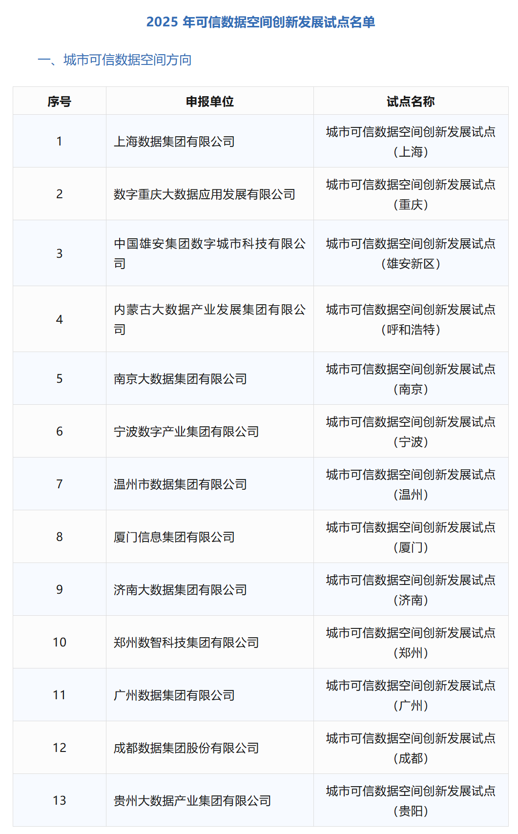 2025年可信数据空间创新发展试点名单公布