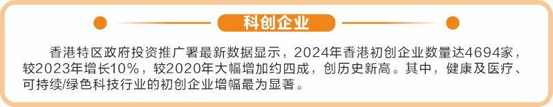 思谋科技的成功是香港科创行业蓬勃发展的缩影。香港特区政府投资推广署数据显示,2024年香港初创企业数量达4694家,创历史新高,健康及医疗、可持续/绿色科技行业增幅显著。
