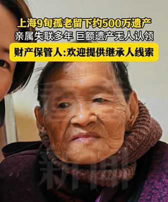据案件聚焦报道,上海一位90岁孤老去世后留下了房子、存款、珠宝等总计约500万的遗产,却找不到继承人。