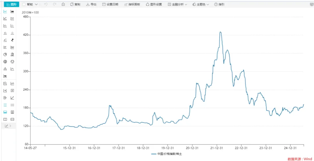 从稀土价格走势来看,最近也明显走出了上升的趋势。值得注意的是,最近有色矿产的期货价格亦是频频异动,明显走强。在反内卷叠加弱美元周期的背景之下,这种趋势可能有会持续。