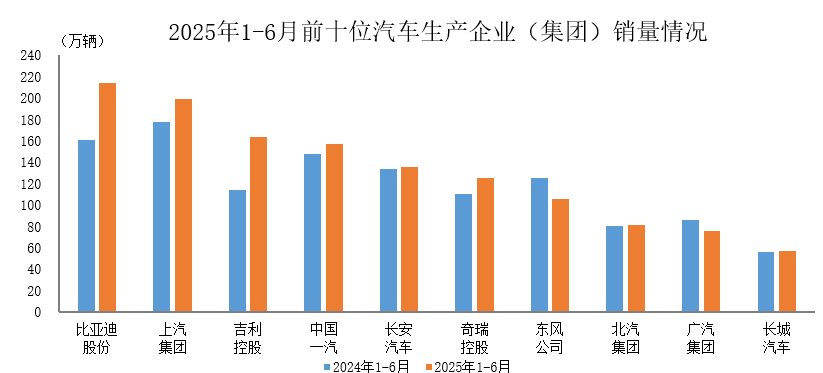 2025上半年汽车销量:前十企业表现分化,市场格局生变