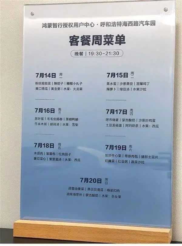 近段时间以来,鸿蒙智行车主之间最流行的做法就是去用户中心“蹭饭”,而服务中心也被不少人调侃为“鸿蒙大酒店”。从晒出的菜品和菜单看,夜宵确实很丰富,不仅有主食,还有小菜、水果,甚至连内蒙古最知名小吃烧麦都提供,而且竟然做到了每天不重样!