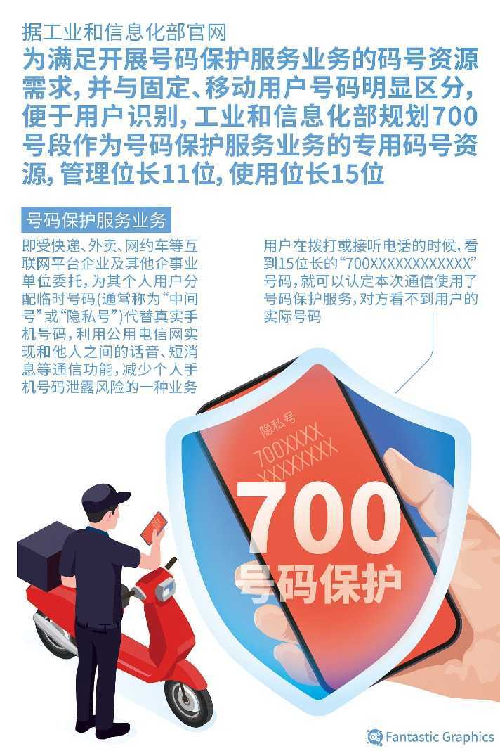 工信部发布《关于开展号码保护服务业务试点的通知》,规划700号段作为号码保护服务业务的专用号段,以减少个人手机号泄露风险,实现隐私保护,并防范电信诈骗等不法行为。