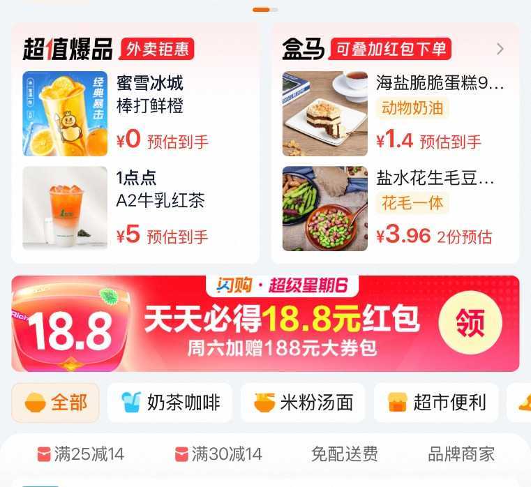 不过,《每日经济新闻》记者实测发现,外卖大战并未彻底结束。以北京为例,美团App上消费者仍能领取免费通兑券,淘宝闪购也有“预估到手0元”的蜜雪冰城单品,但均附加了前置条件,很难实现真正的免费。