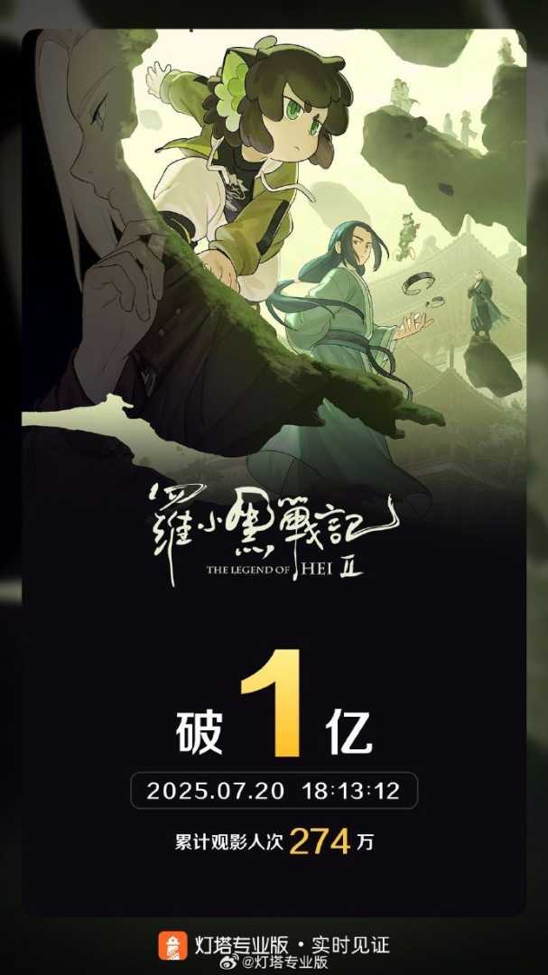 据灯塔专业版实时数据,截至7月20日18时13分,备受瞩目的影片《罗小黑战记2》票房成功突破1亿大关。这一成绩不仅彰显了该影片的强大吸引力,也反映了观众对于优质动画电影的热切期待。《罗小黑战记2》以其精彩的剧情、精美的画面和出色的配音,赢得了广大观众的喜爱和好评。
