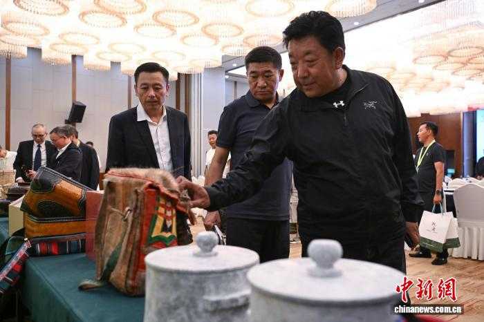 图为参会人员参观特色产品展示区。 贡嘎来松摄