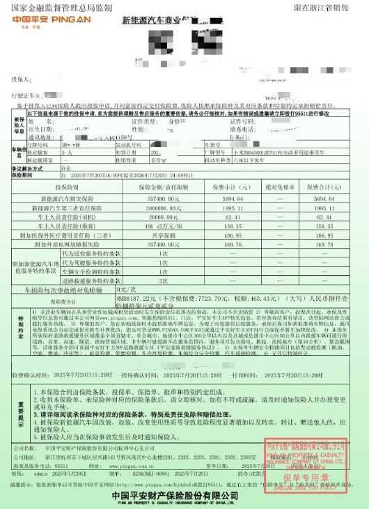 保险单显示,小米YU7售价35.74万元,保险费用为8187.22元。尊界S800售价94.8万元,保险费用为8877.77元。两车保险费用仅相差690.55元,这一差距远低于市场预期。小米YU7保费较高,主要因其赔付率较高,导致保险系统出单价格上升。