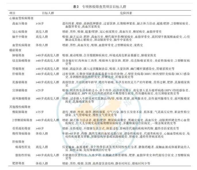 《健康体检基本项目专家共识(2022)》列出的专项体检项目