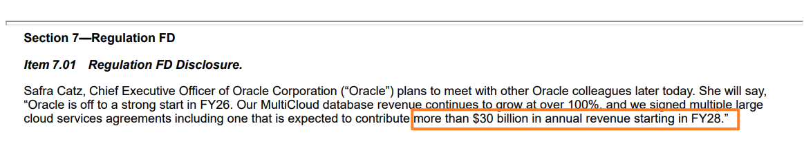 值得一提的是,甲骨文6月30日时曾提交监管报告,披露与一家未透露名字的客户签订“每年超过300亿美元”的巨额云服务协议,从2028财年开始生效。从种种迹象来看,这家客户大概率就是OpenAI。300亿美元大概是OpenAI近期预期年营收的3倍,公司正押注随着付费客户和广告数量的增加,其收入能够覆盖巨额的算力采购。