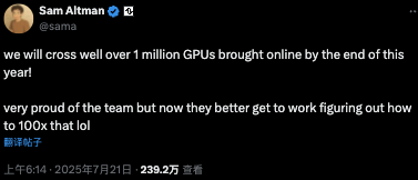 OpenAI也在公告中确认,“星际之门”的定义是所有向OpenAI提供算力的基础设施平台,并非仅限于与软银、甲骨文等合资公司投资开发的新算力。因此CoreWeave和微软云服务向OpenAI提供的算力,也被算在“星际之门”里面。OpenAI的首席执行官山姆·奥尔特曼昨日曾自夸称,到今年年底,公司上线的GPU数量将远超100万个。