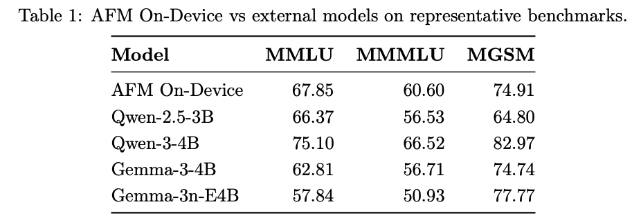 根据苹果上周公布的2025基础模型报告,该公司的自研端侧模型参数量为30亿。虽然专门为苹果芯片进行优化,但在与千问、Gemma等同等规模的开源模型对比中,苹果端侧模型的“跑分”并不突出。更何况,目前大多数消费者,都在使用云端运行的(数)千亿参数大模型,能力差距更加突出。