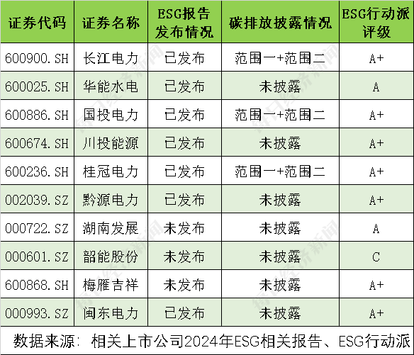 在碳排放数据披露上,3家企业公布了范围一和范围二,没有企业公布范围三。中财大绿金院副院长施懿宸表示,水电运营阶段排放低,部分企业可能产生“天然低碳、无需披露”的错觉。