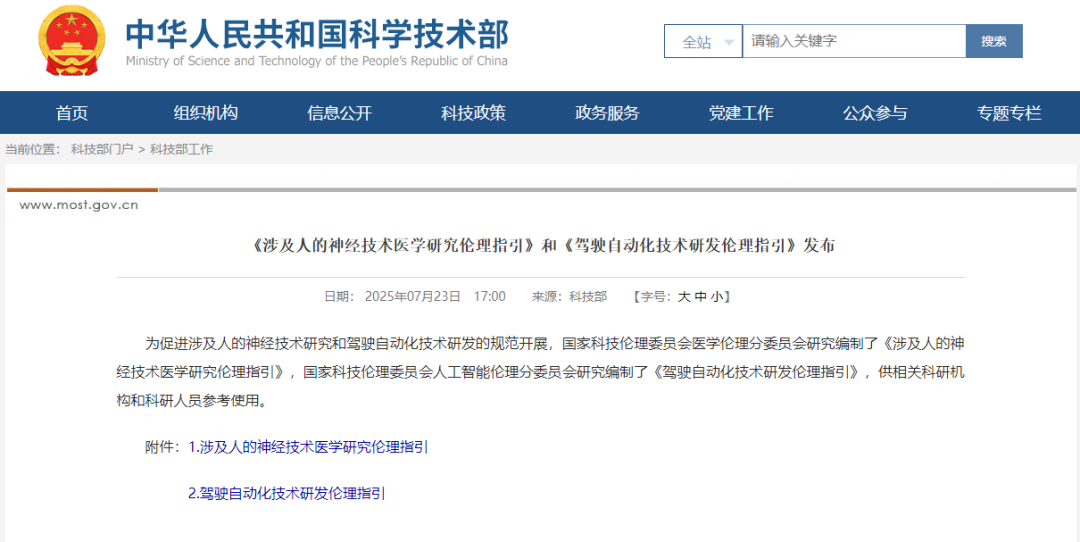 国家科技伦理委员会发布《驾驶自动化技术研发伦理指引》,强调尊重生命、客观准确发布成果、设计风险监测与应急机制等,规范智能驾驶发展。