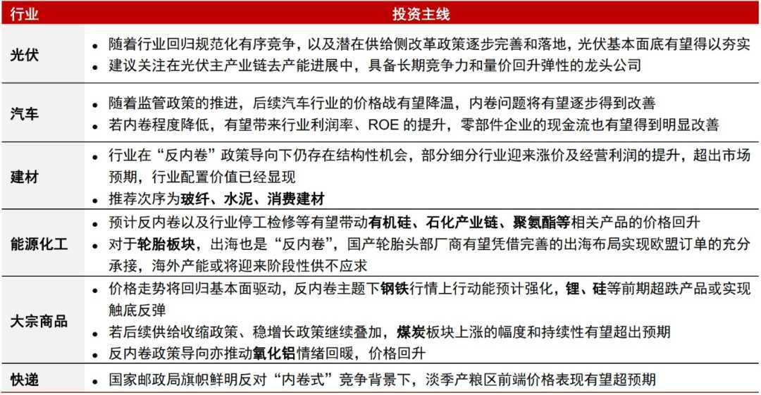 中信证券研报称,“反内卷”作为市场热点,政策定调能级持续提升。不过,具体落地政策尚未全面出台,整体仍处于交易预期阶段。在这一阶段,持仓出清的行业如钢铁、光伏和水泥等更易受资金青睐;新能源领域中,锂电设备、锂电池、光伏逆变器等部分板块估值处于合理区间,值得投资者关注。