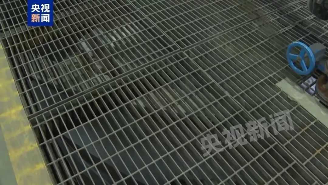 事发时5块格栅板坠落,老师抓住浮选机边缘被救。总台记者在现场看到,格栅板宽1米左右,长度应该是在1米5左右,每一个格栅板中间会有一个这样的横梁,两边都会担在两侧的横梁上。