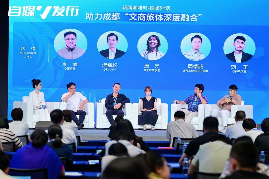 7月25日,2025“自媒V发布”平台启动活动在成都举行,一场以“自媒体如何赋能城市文商旅体深度融合”为主题的圆桌对话活动同步上演。