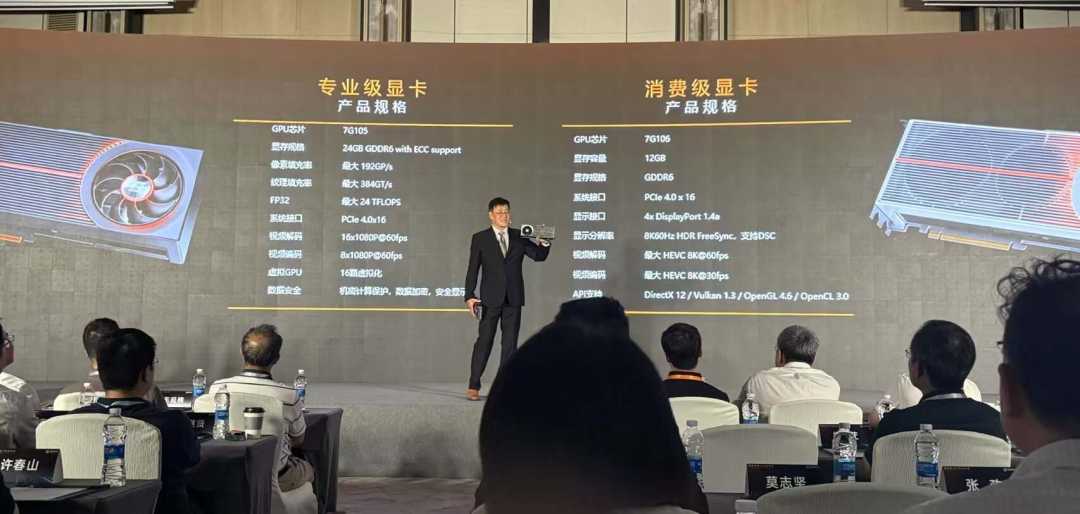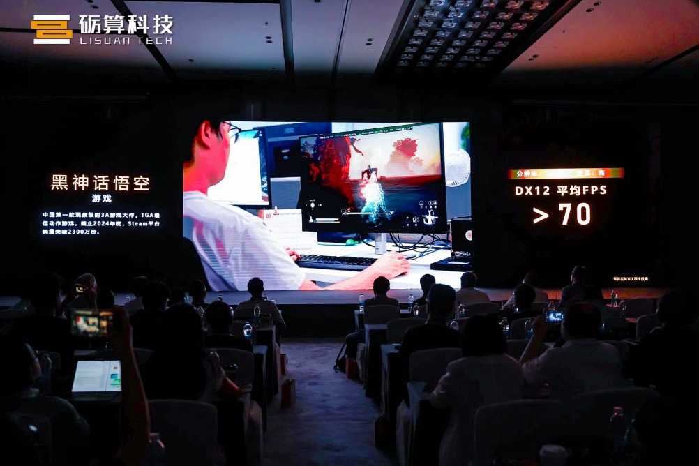 发布会现场,砺算科技展示了7G100对《黑神话·悟空》《古墓丽影》《明末:渊虚之羽》等热门游戏,以及Deepseek大模型、剪映软件等任务的运行情况,并提供了对《黑神话》的现场游戏实测机会。