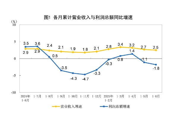 国家统计局工业司统计师于卫宁表示,6月份规模以上工业企业营业收入同比增长1.0%,增速与5月份持平,工业企业营收持续增长,为企业盈利恢复创造有利条件。