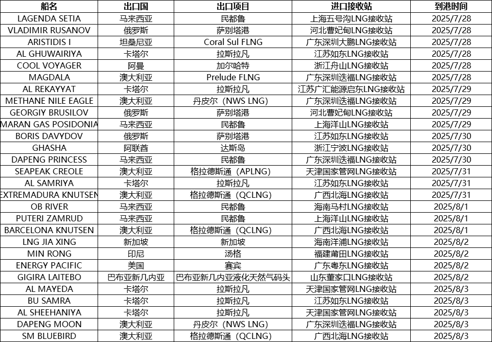 新华财经报道,7月21日-7月27日当周,中国LNG进口量约166万吨,前值为150万吨。来源国有10个,华南地区接卸最多。预计7月28日-8月3日进口量约206万吨,反映国内对清洁能源的强劲需求。