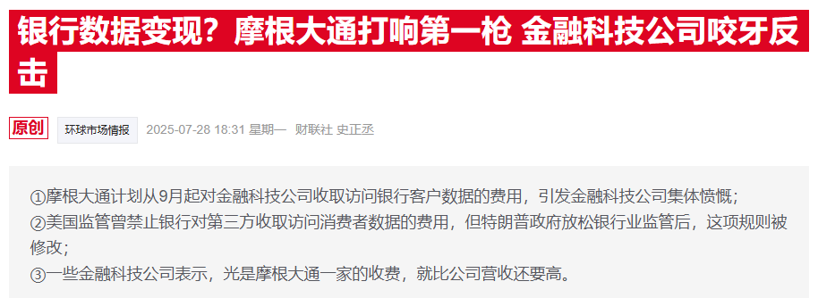 作为美国最大的银行,摩根大通近期已开始通知金融科技公司,今后每次客户数据被访问都将收费,此举在加密货币及金融科技行业引发了广泛讨论。
