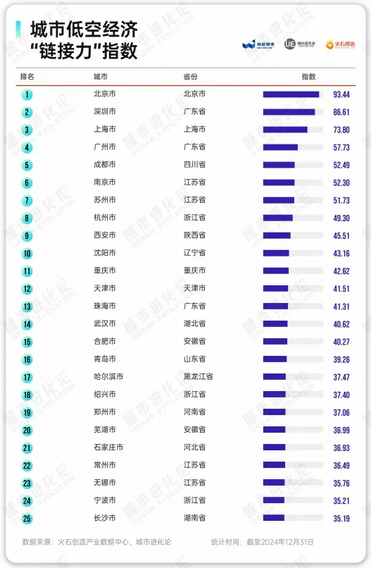 环境友好度考量城市支持低空经济发展的“硬环境”与“软环境”。深圳已建成各类型起降设施483个、5G基站8万个,并升级5G-A基站超2.3万个,实现120米以下空域5G网络连续覆盖。同时,深圳相继出台多项政策赋能低空经济发展。#动向 北京打造青年交友服务品牌 7月31日,北京市人民政府办公厅发布《北京市关于完善生育支持政策体系推动建设生育友好型社会的工作措施》。其中提到,培育新型婚育文化,加强婚恋指导服务,打造“青春志爱团”等青年交友服务品牌。 上海明年将启动城中村整体改造项目 7月30日,上海市十六届人大常委会第二十三次会议讨论了市人民政府关于城市更新工作推进情况的报告。报告“剧透”最新数据,上海还立下“新目标”——2026年全面启动城中村整体改造,2027年全面完成小梁薄板房屋改造。 四川盆地首个页岩油田诞生 7月31日从中国石化获悉,复兴油田首期石油2010.06万吨、天然气123.52亿立方米探明地质储量通过自然资源部评审,标志着我国四川盆地首个页岩层系油田诞生。 哈尔滨瞄准冰雪装备产业发展新高地 哈尔滨出台《哈尔滨市冰雪装备制造专项规划(2025—2030年)》。依据《规划》,到2027年,哈尔滨企业技术装备水平和生产销售规模迈上新台阶;到2030年,初步形成具有高质量发展基础的冰雪装备产业体系;到2035年,致力成为全球领先的冰雪装备产业基地。#数读 去年全国结婚登记610.6万对 7月30日,民政部公布的《2024年民政事业发展统计公报》显示,2024年,全年依法办理结婚登记610.6万对,比上年下降20.5%。结婚率为4.3‰,比上年下降1.1个千分点。依法办理离婚手续351.3万对,离婚率为2.5‰。