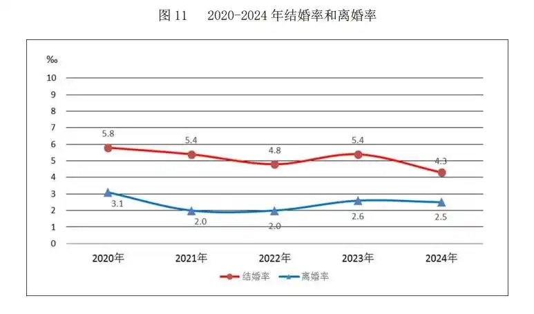 去年结婚人口中,25到29岁年龄段结婚人数最多。另外,2025年上半年结婚登记353.9万对,比去年同期增加了10.9万对。