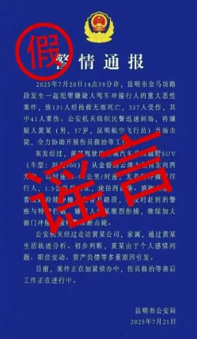 经查,黄某忠(男、39岁)为博取关注、吸引眼球,在互联网平台发布该虚假“警情通报”,造成谣言传播扩散,扰乱公共秩序。目前,公安机关已依法对黄某忠刑事拘留。