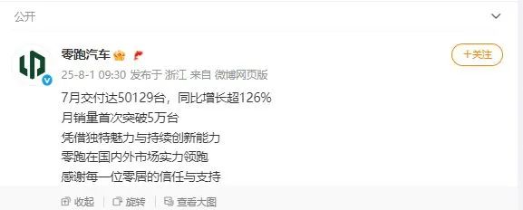 零跑汽车7月全系交付50129台