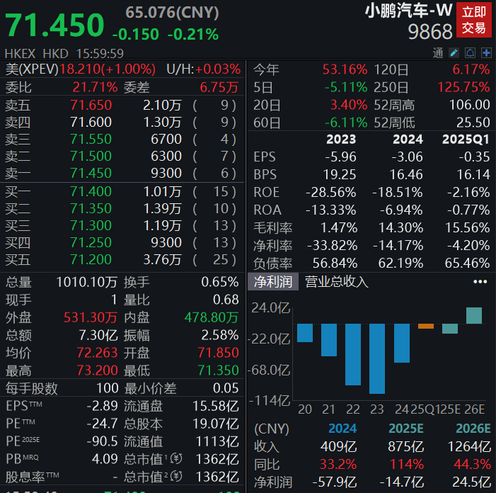 7月中旬,小鹏汽车在欧洲市场推出2025款小鹏G6和G9,并宣布即将推出小鹏P7+,增强了在欧洲的增长势头。随着进入英国、意大利等新市场,公司现已进入全球46个国家和地区。截至16:00,小鹏汽车港股报71.4港元/股。