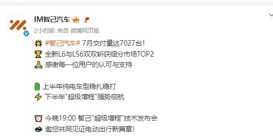 据智己汽车8月1日官方微博,智己汽车7月交付量达7027台。