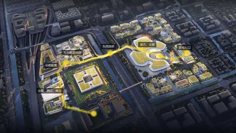 在规划建设方面,上海市政府已批复《上海东方枢纽国际商务合作区控制性详细规划》,通过强化空间设计与功能布局的协同、打造互联互通空间体系促进东西片区链接、贯彻绿色低碳发展理念,高品质规划建设国际一流的商务合作区。其中,联检大楼、会议会展中心、酒店等功能设施和道路、网络、能源等基础设施都将于封闭验收前投入使用。同时,上海东方枢纽国际商务合作区管理局正在规划建设一批会议会展场馆、科创研发孵化基地、医疗器械培训展示创新中心等功能性项目,为产业功能发展提供空间载体。