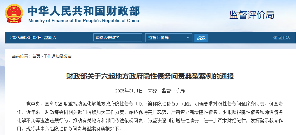 据财政部官网披露,党中央、国务院高度重视防范化解地方政府隐性债务(以下简称“隐性债务”)风险,明确要求对隐性债务问题终身问责、倒查责任。