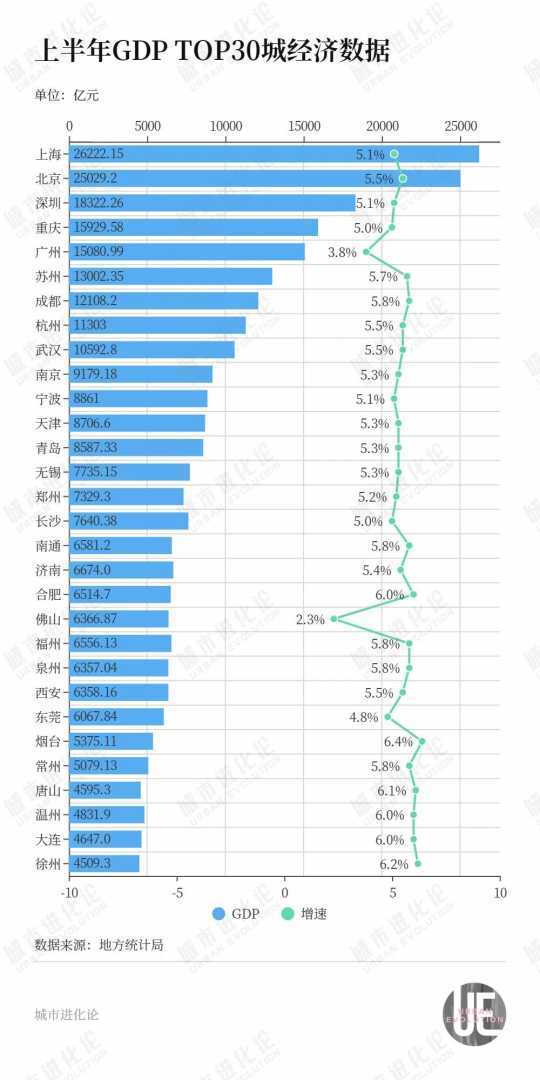 30城经济半年报:城市格局加速变化,京沪快跑成杭竞速
